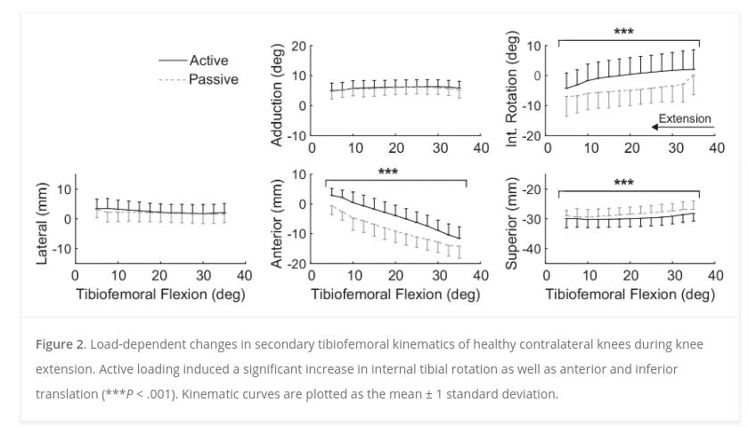 This also appears to be true for the patellofemoral joint (PFJ), a 2023 study by Liao et al. from Michigan-Flint found ongoing underloading of the PFJ three years post ACLR, with the contact pressure of the non-surgical also underloading to achieve symmetry of the surgical leg. Hipsley et al.’s biological explanation for the expansion of cartilage is due to a lack of proteoglycans (from underloading) and the contribution of excess edema in the joint space.